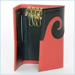 Graphic, black and red leather Pierre Cardin wallet and key holder set featuring Cardin’s stylish logo